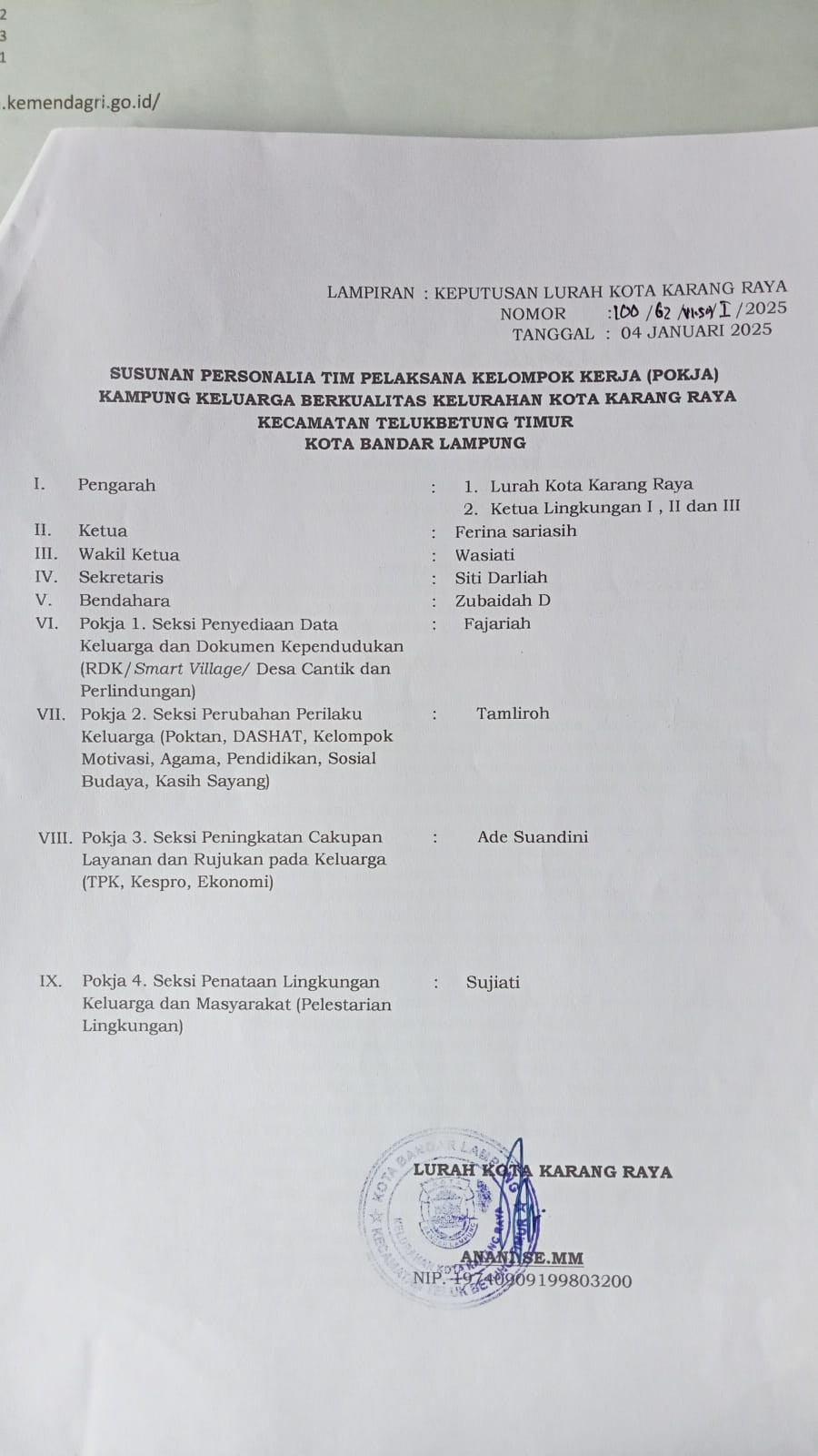 Demikianlah gambaran singkat Kelurahan kota karang raya sebagai referensi untuk keberadaan Kampung KB