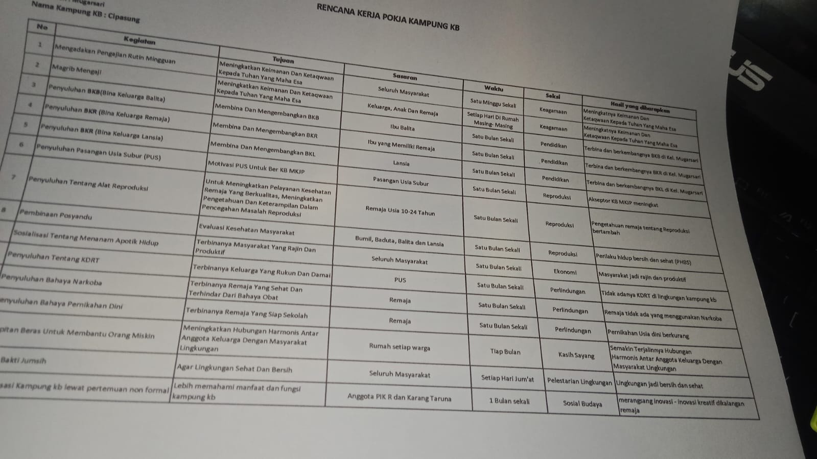 Dengan memperhatikan hal tersebut diatas, maka di RW. 05 Kelurahan Mugarsari di bentuk Kampung KB Cipasung dan dikukuhkan Kelompok Kerja di Kampung KB Cipasung pada tanggal 30 bulan Juli tahun 2020 oleh Lurah Mugarsari Kecamatan Tamansari Kota Tasikmalaya Provinsi Jawa Barat Nomor : 800/kep.11/kel.2020.
