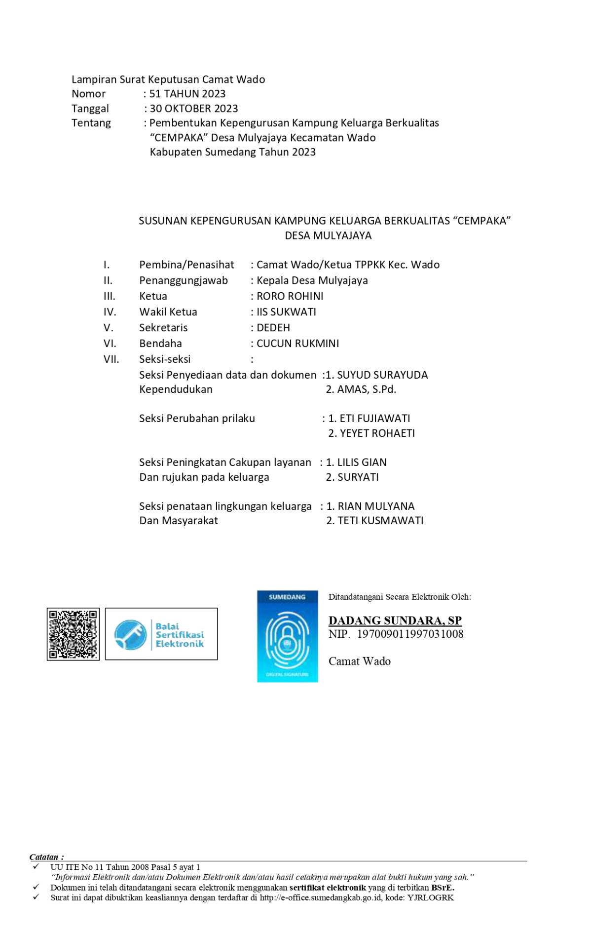 Desa Pawenang Kecamatan Wado Kabupaten Sumedang berdasarkan SK Bupati Kepala Daerah Tingkat II