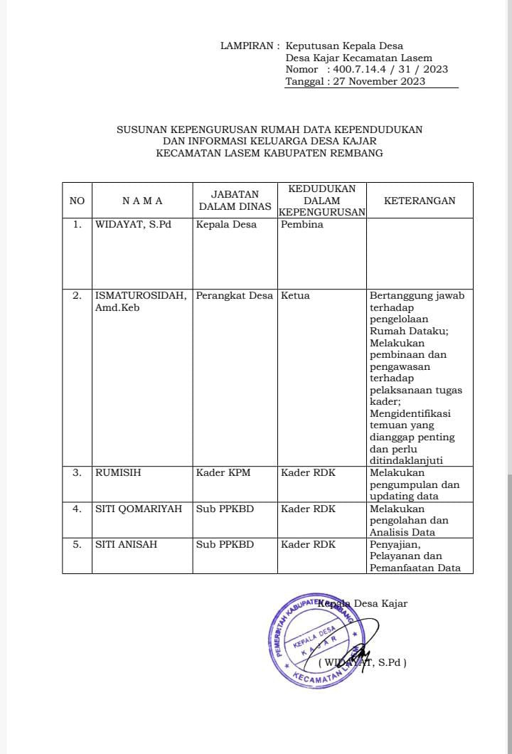 SK Kepala Desa/Lurah tentang Kampung KB |