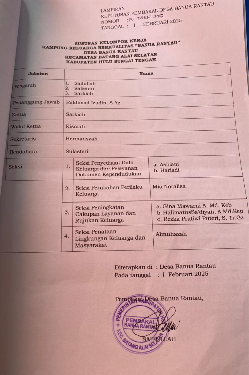 Surat Keputusan/Instruksi/Surat Edaran dari Bupati/Walikota SK Kepala Desa/Lurah tentang Kampung KB |